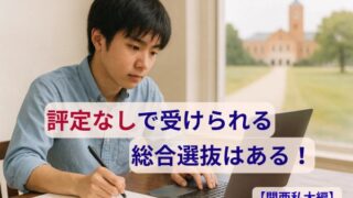 「評定が低いからAO入試は無理…」という方へ。関西大学・同志社大学の方式、立命館大学ユナイトプログラムなど、評定不要で挑戦できる関西私大を解説します。